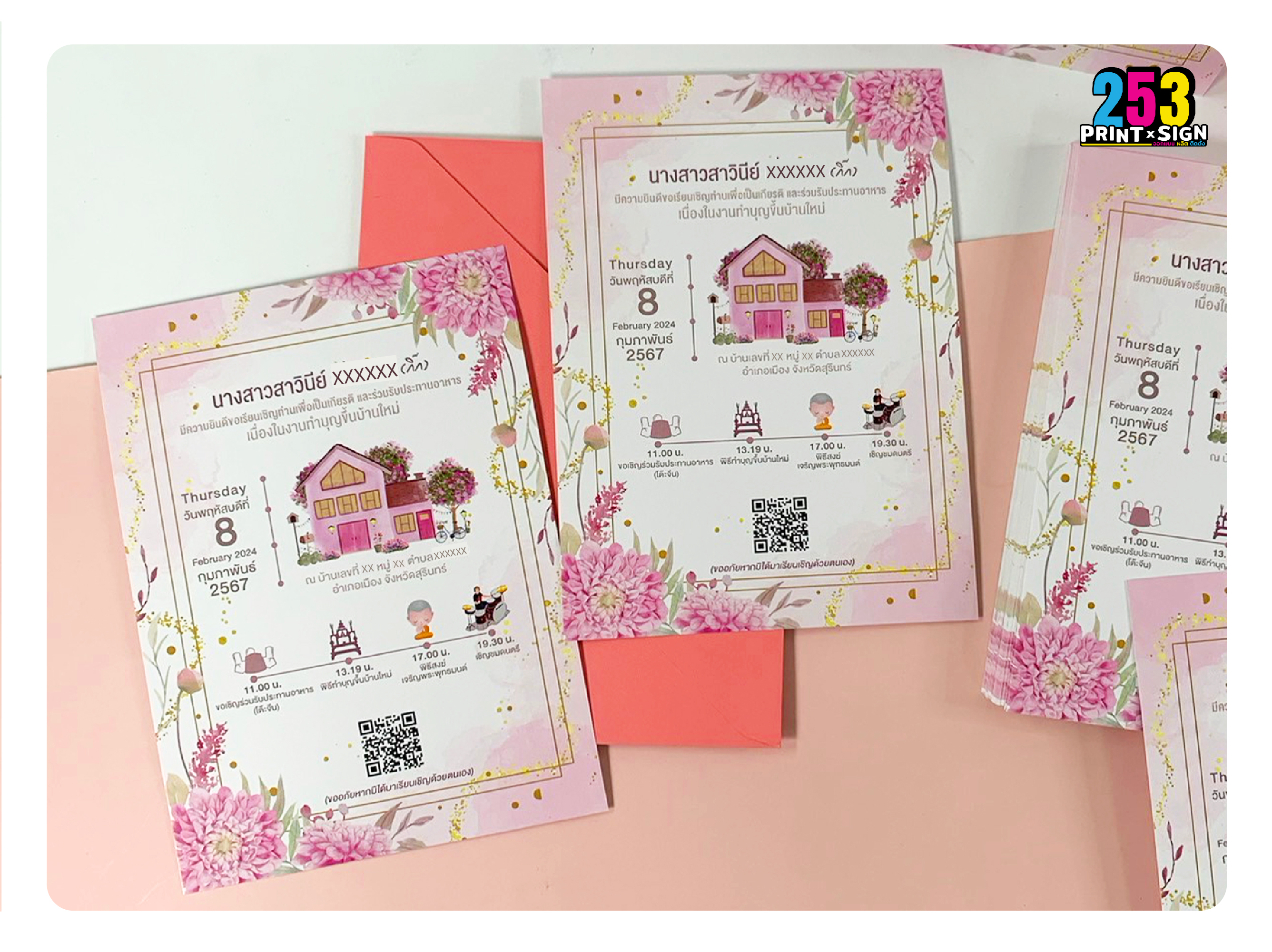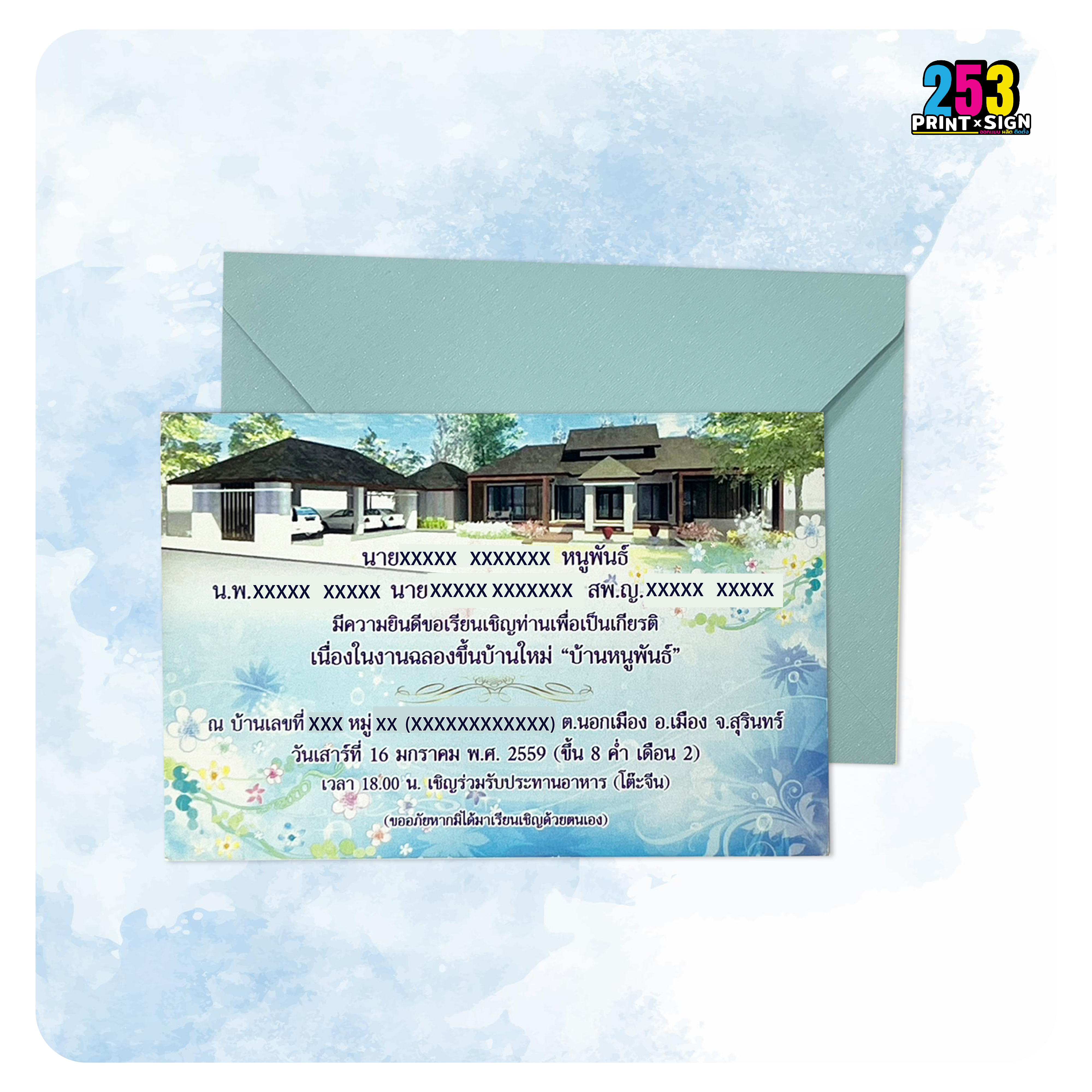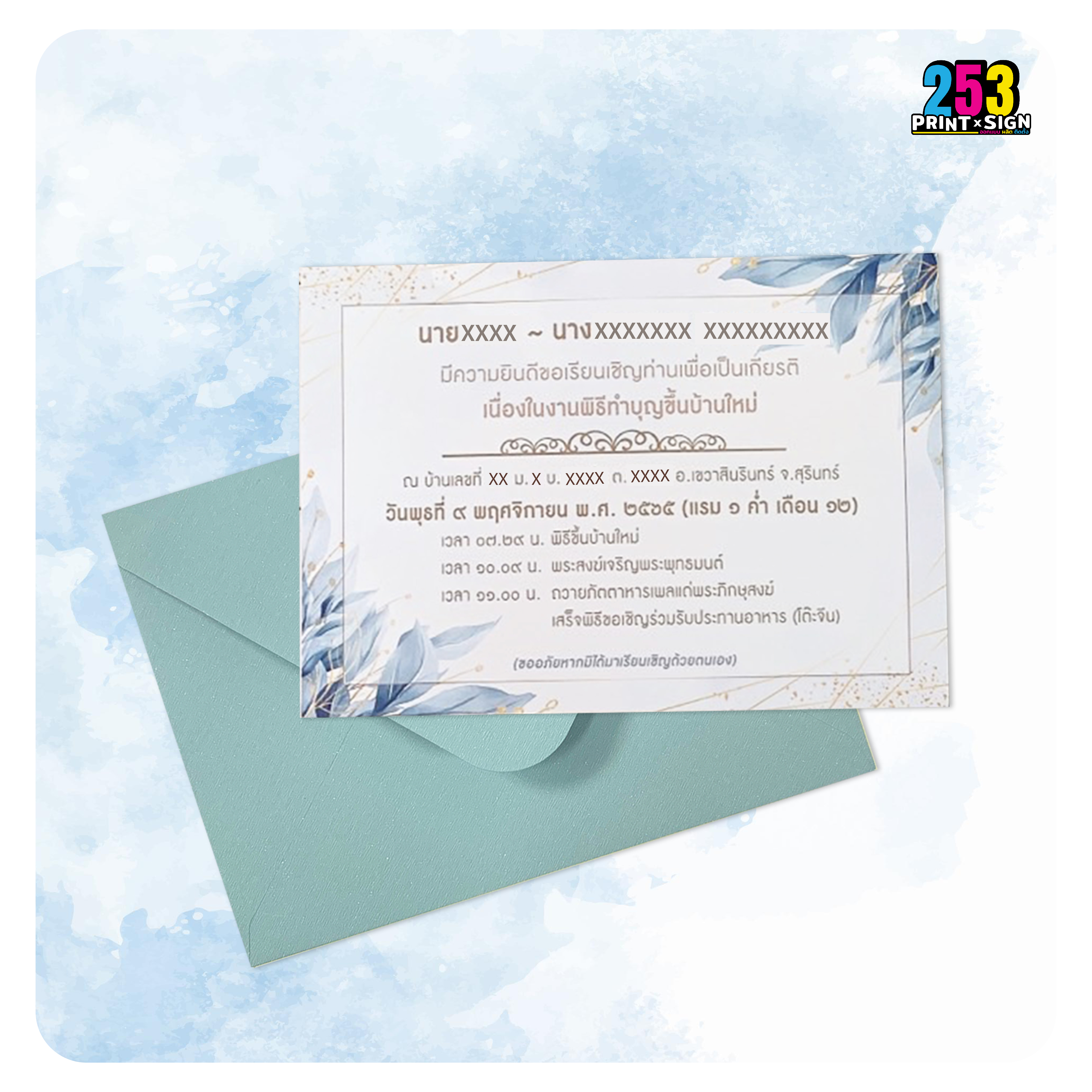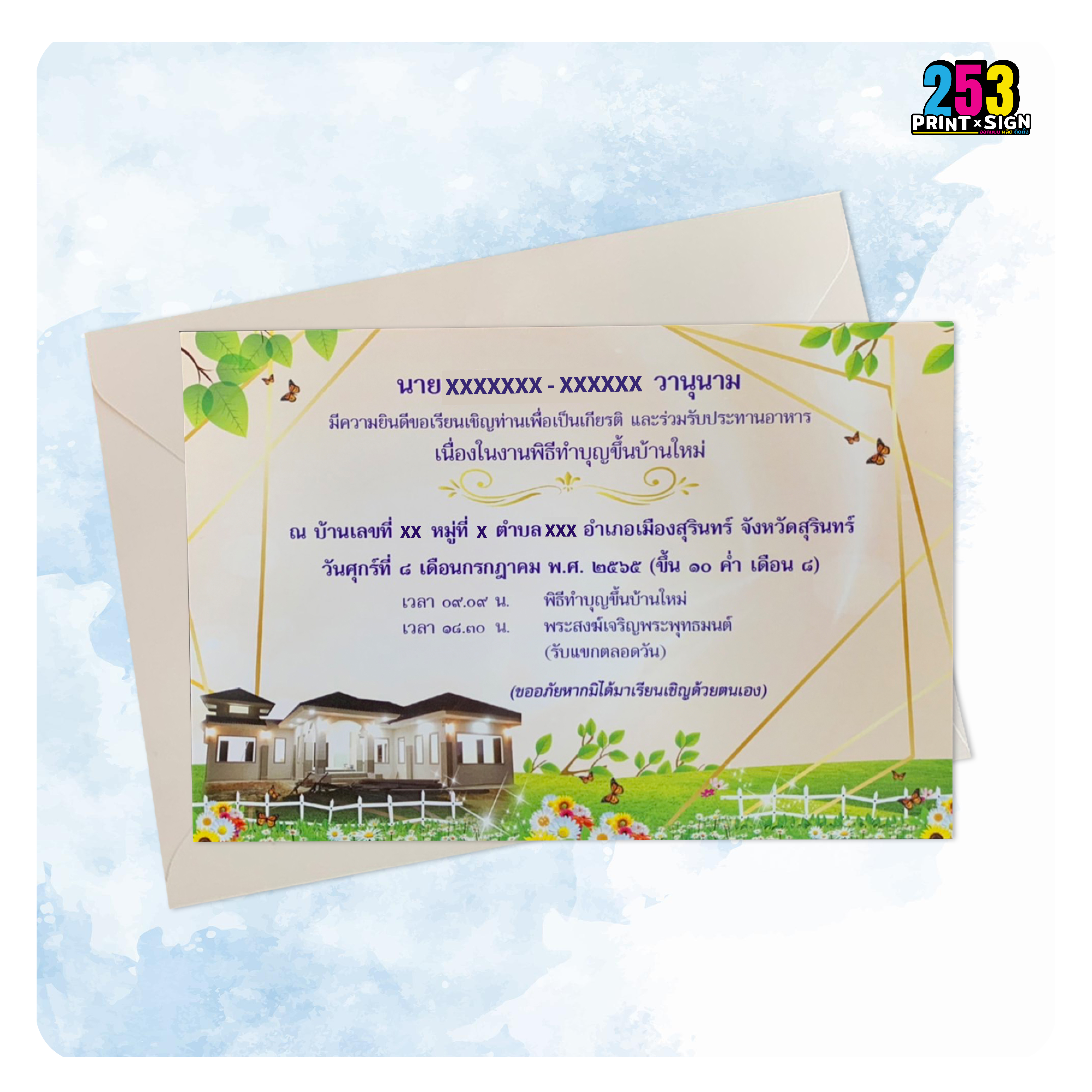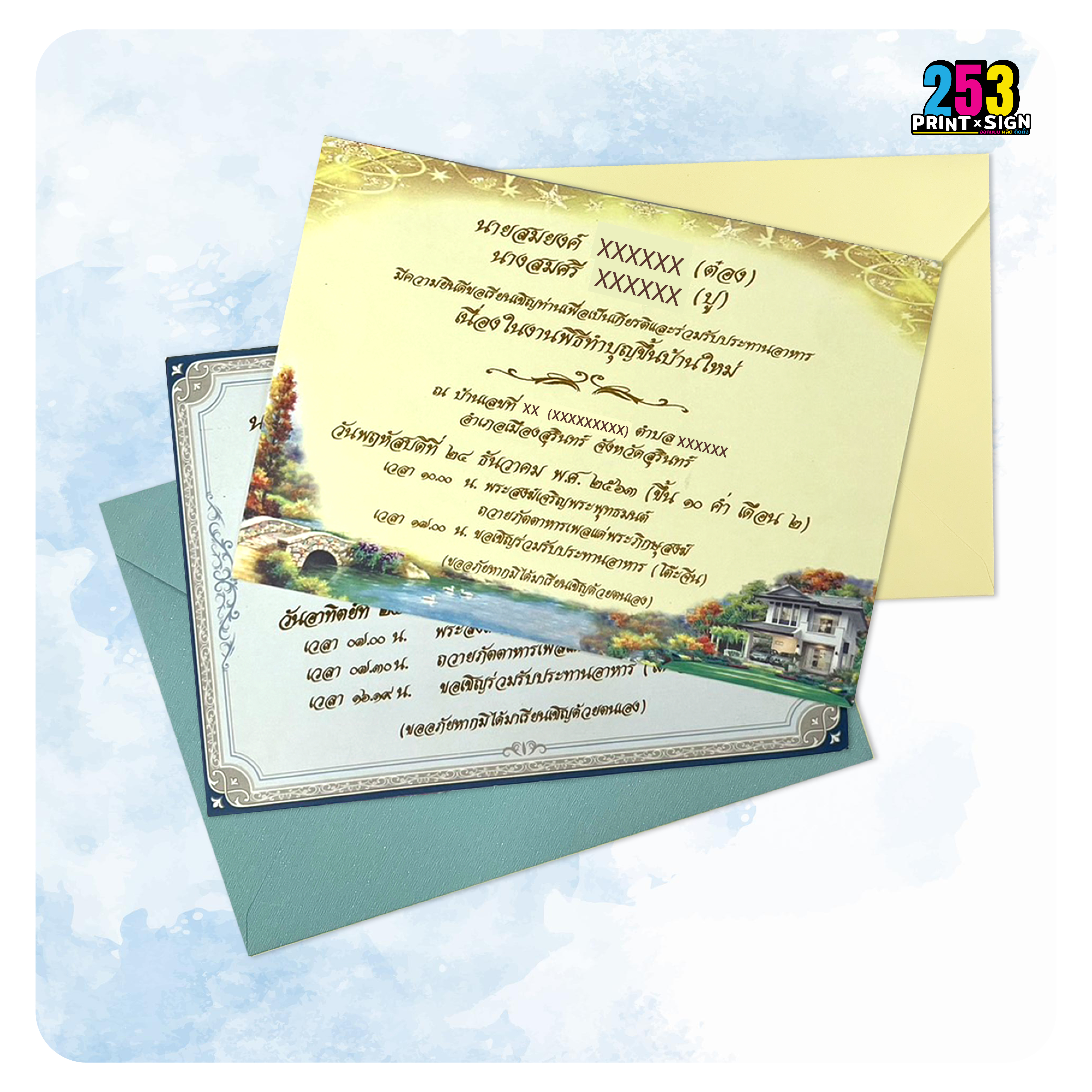บริการ ออกแบบ พร้อม พิมพ์การ์ดงานพิธี (ขึ้นบ้านใหม่)
