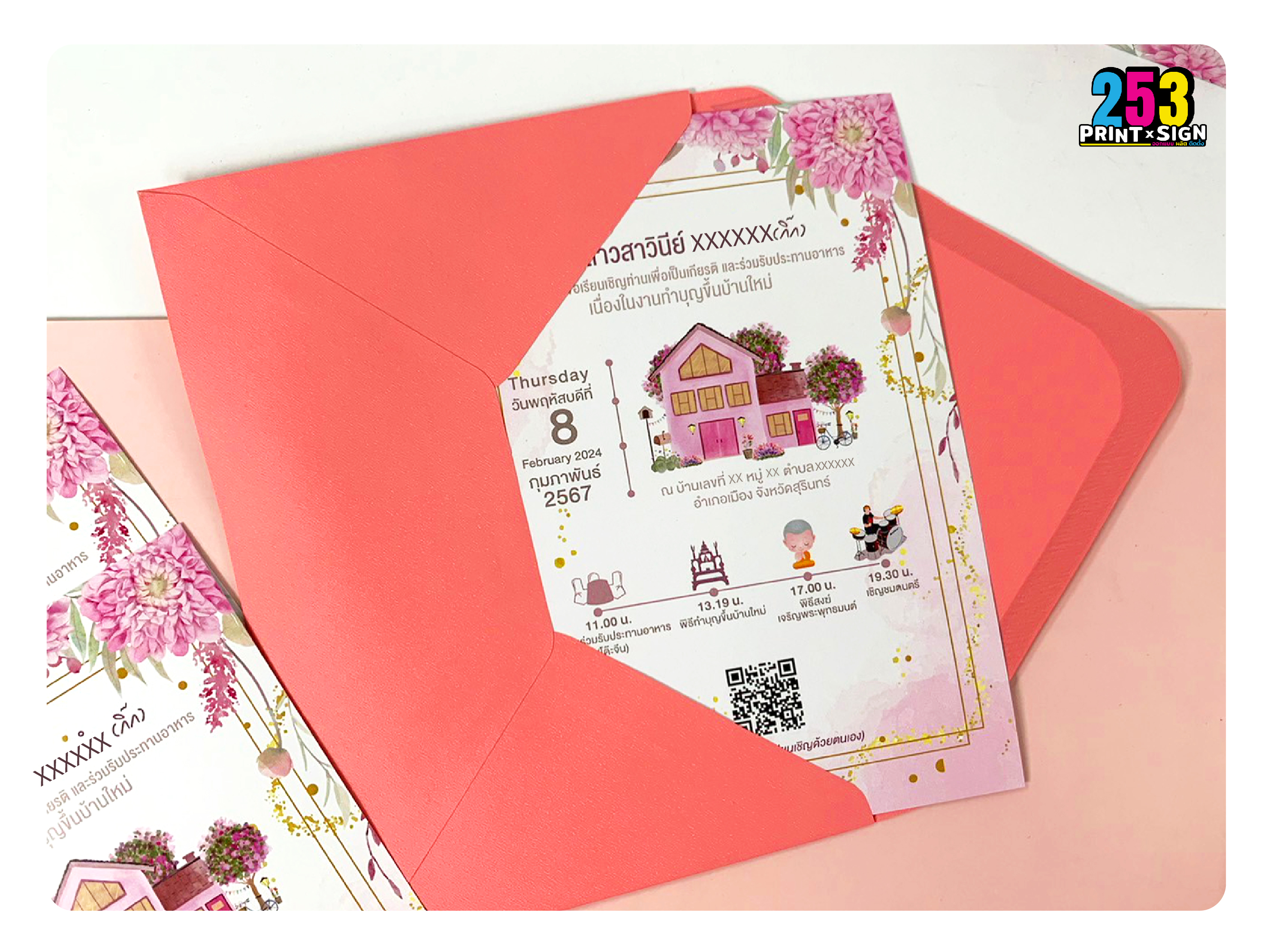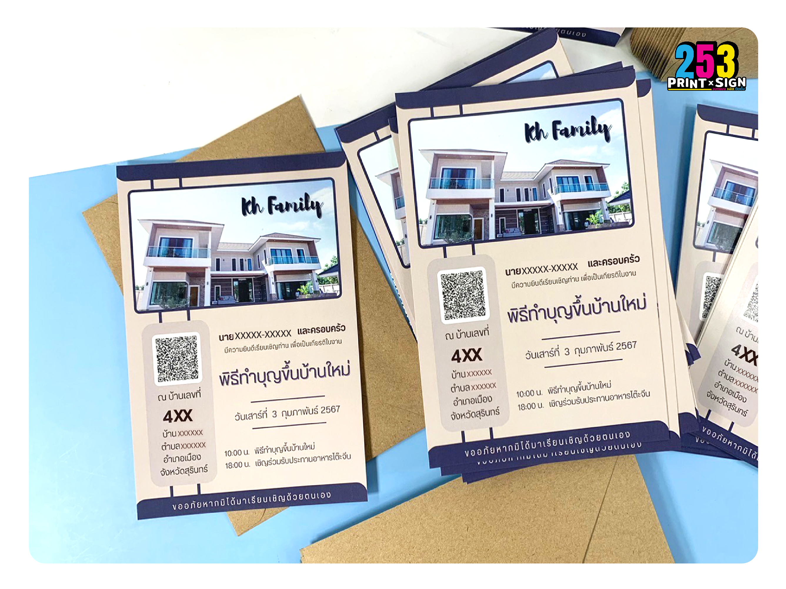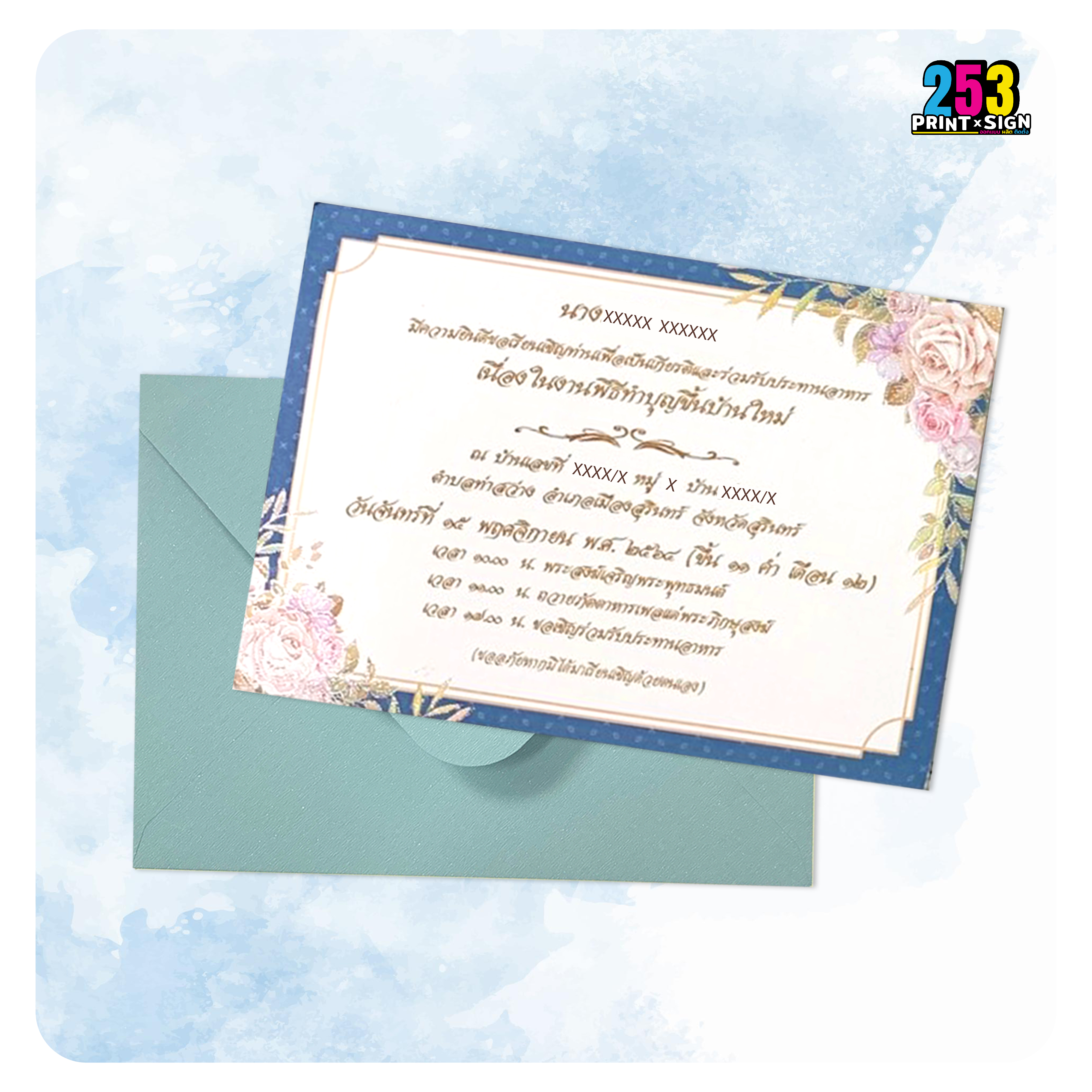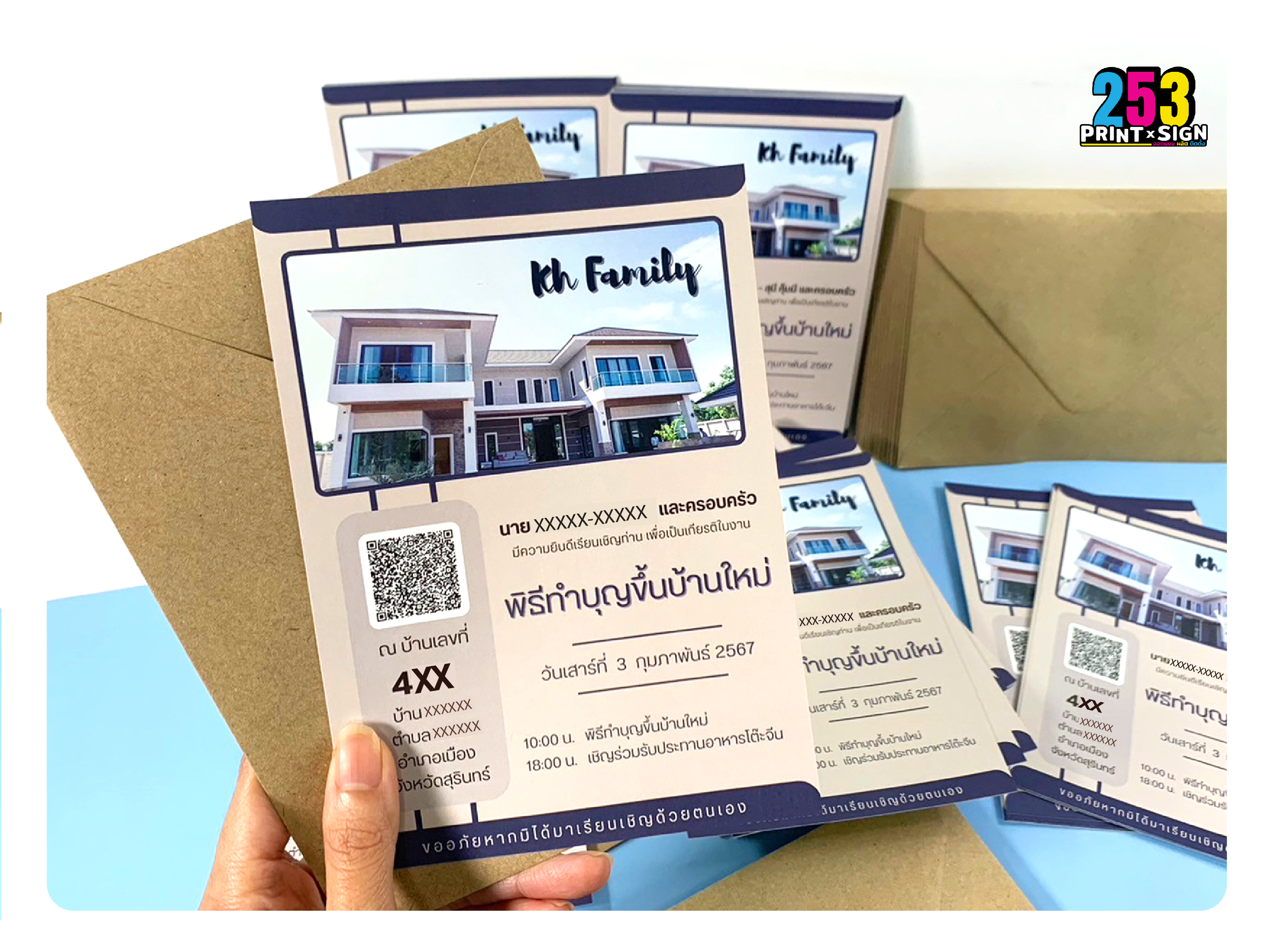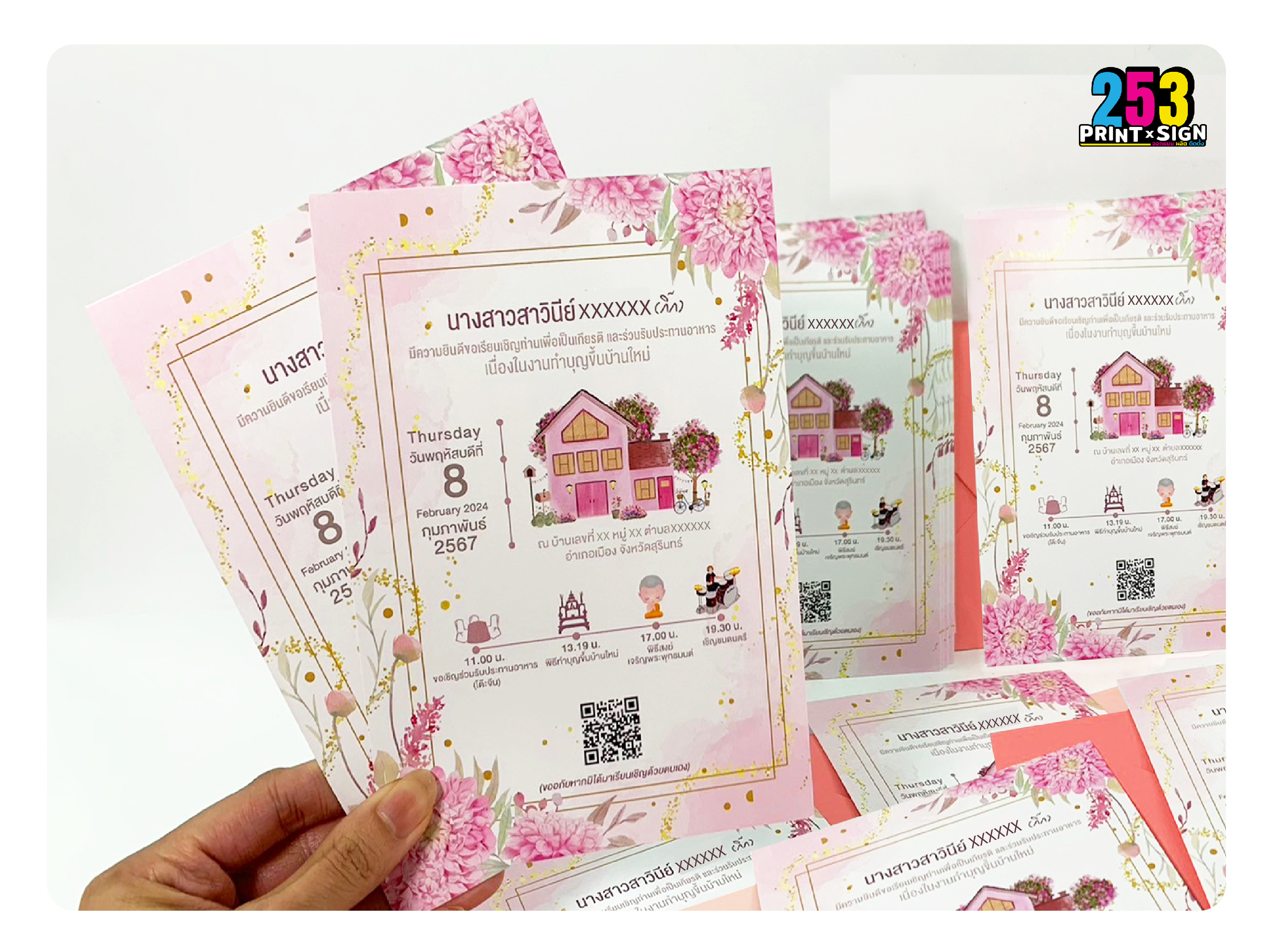 บริการ ออกแบบ พร้อม พิมพ์การ์ดงานพิธี (ขึ้นบ้านใหม่)