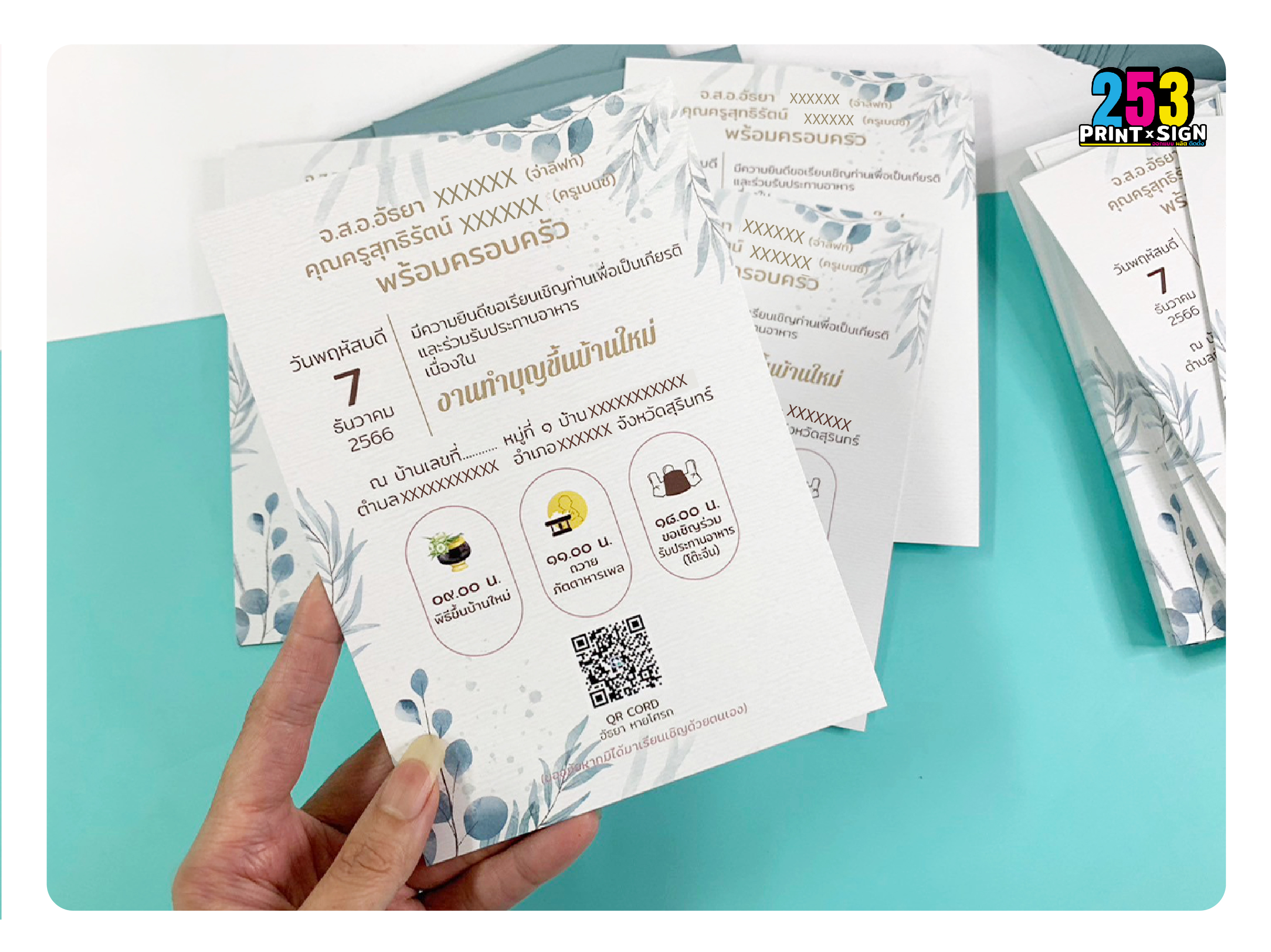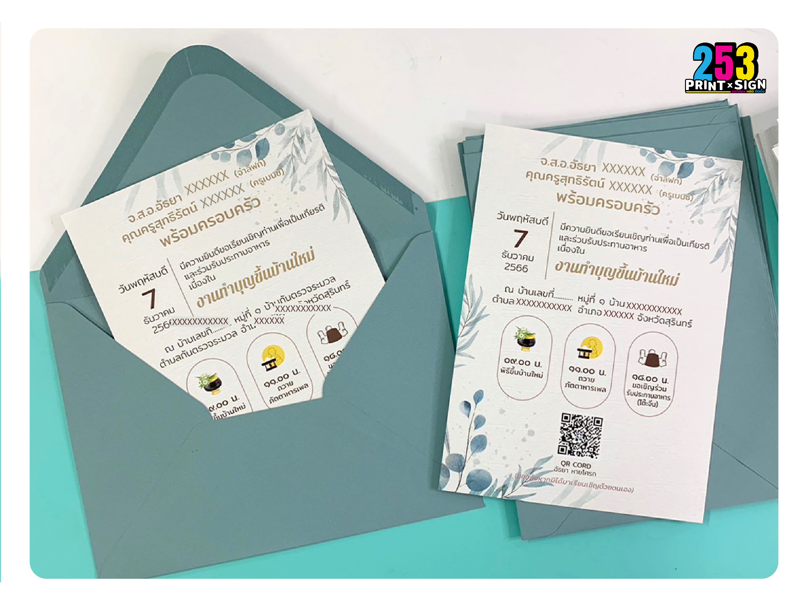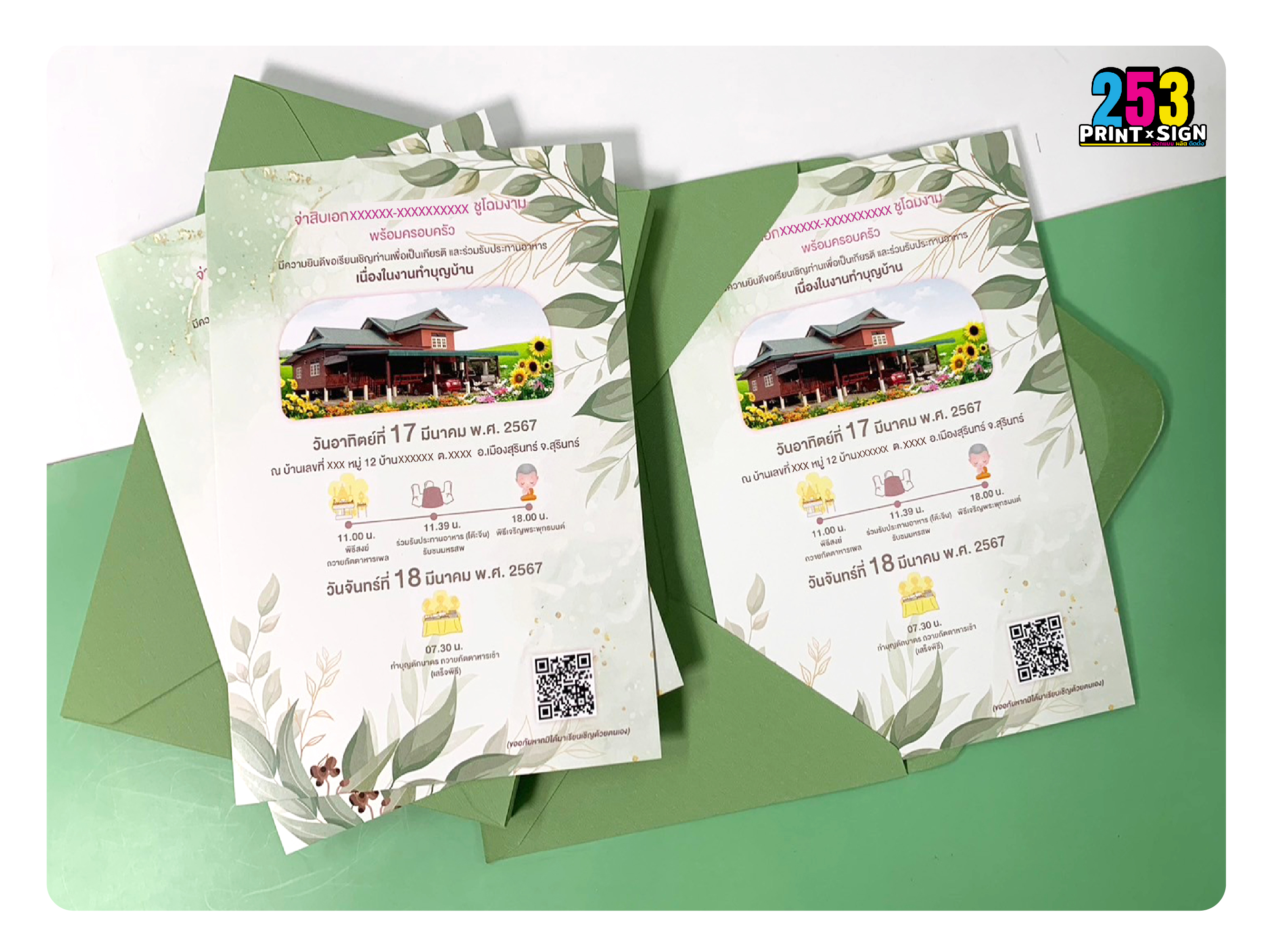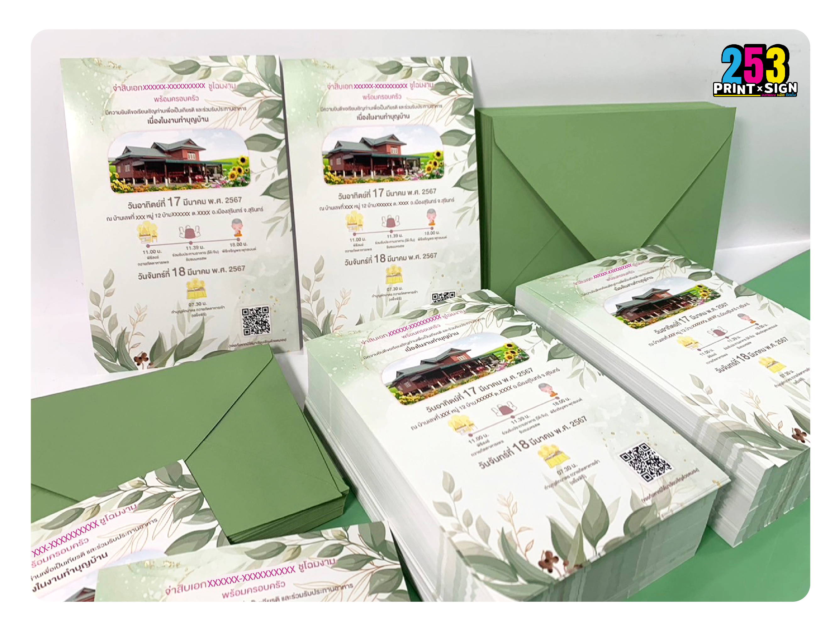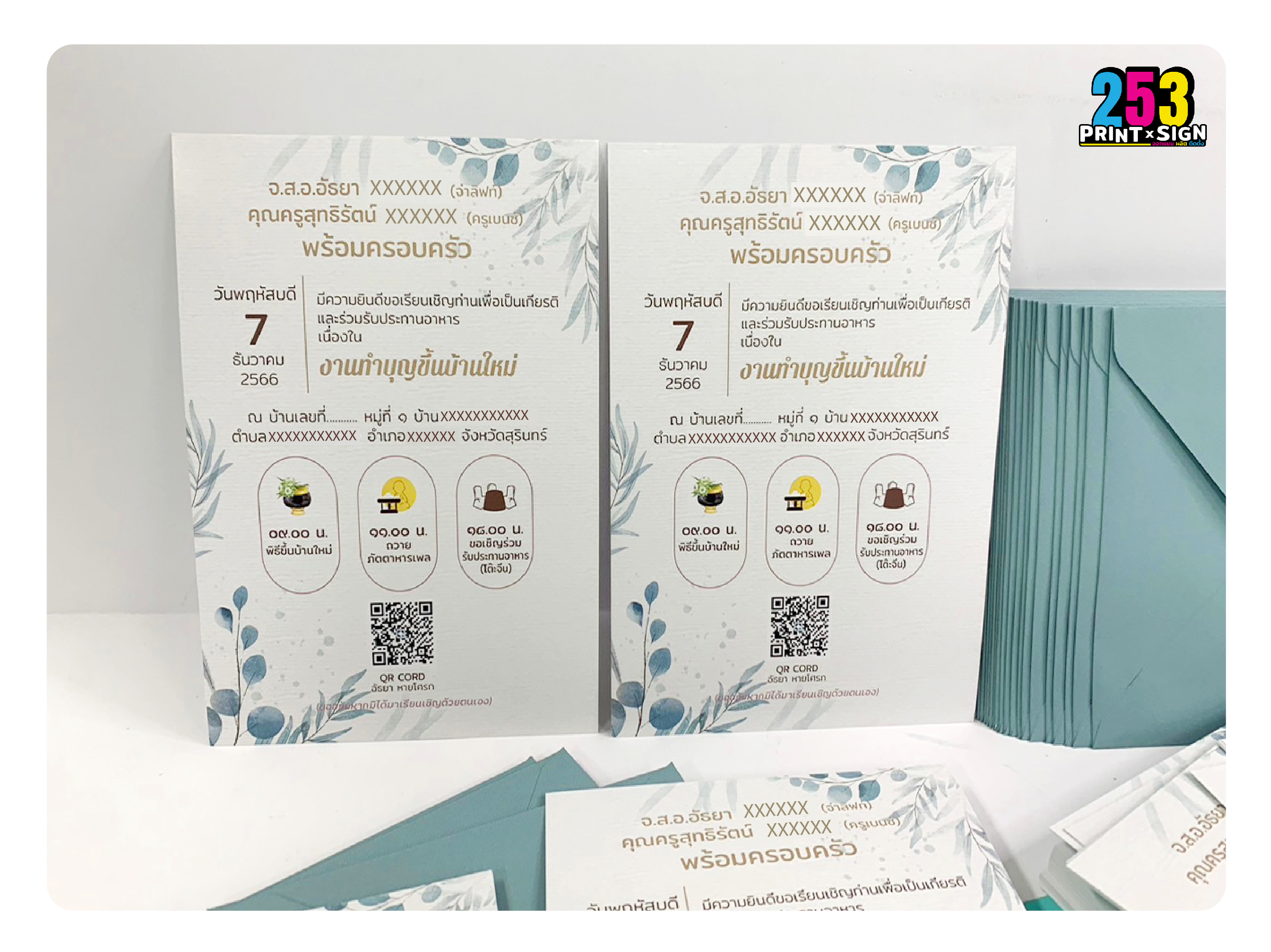 บริการ ออกแบบ พร้อม พิมพ์การ์ดงานพิธี (ขึ้นบ้านใหม่)