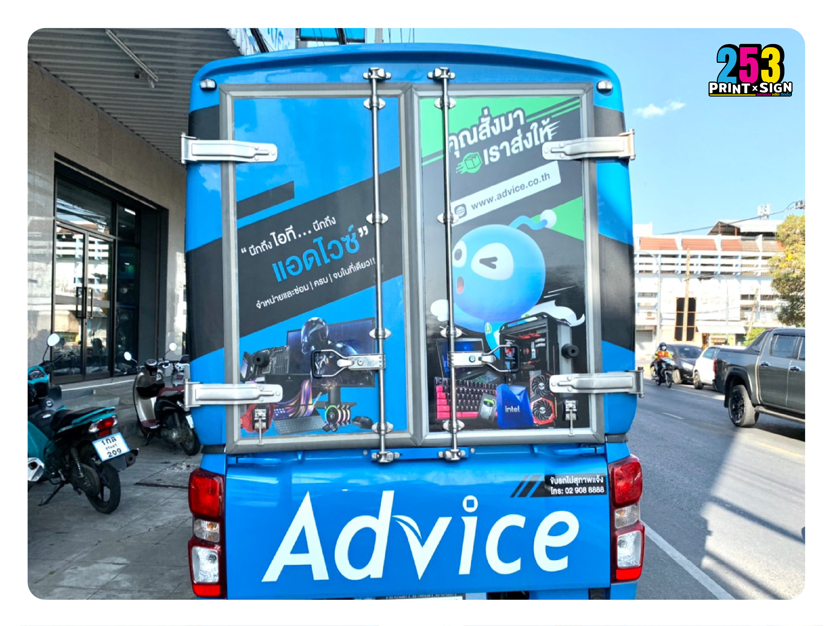 เรามีทีมงานให้คำปรึกษา ออกแบบกราฟฟิกดีไซน์ ผลิต และติดตั้งระดับมืออาชีพ รับทำโฆษณาติดรถทั่วประเทศ
