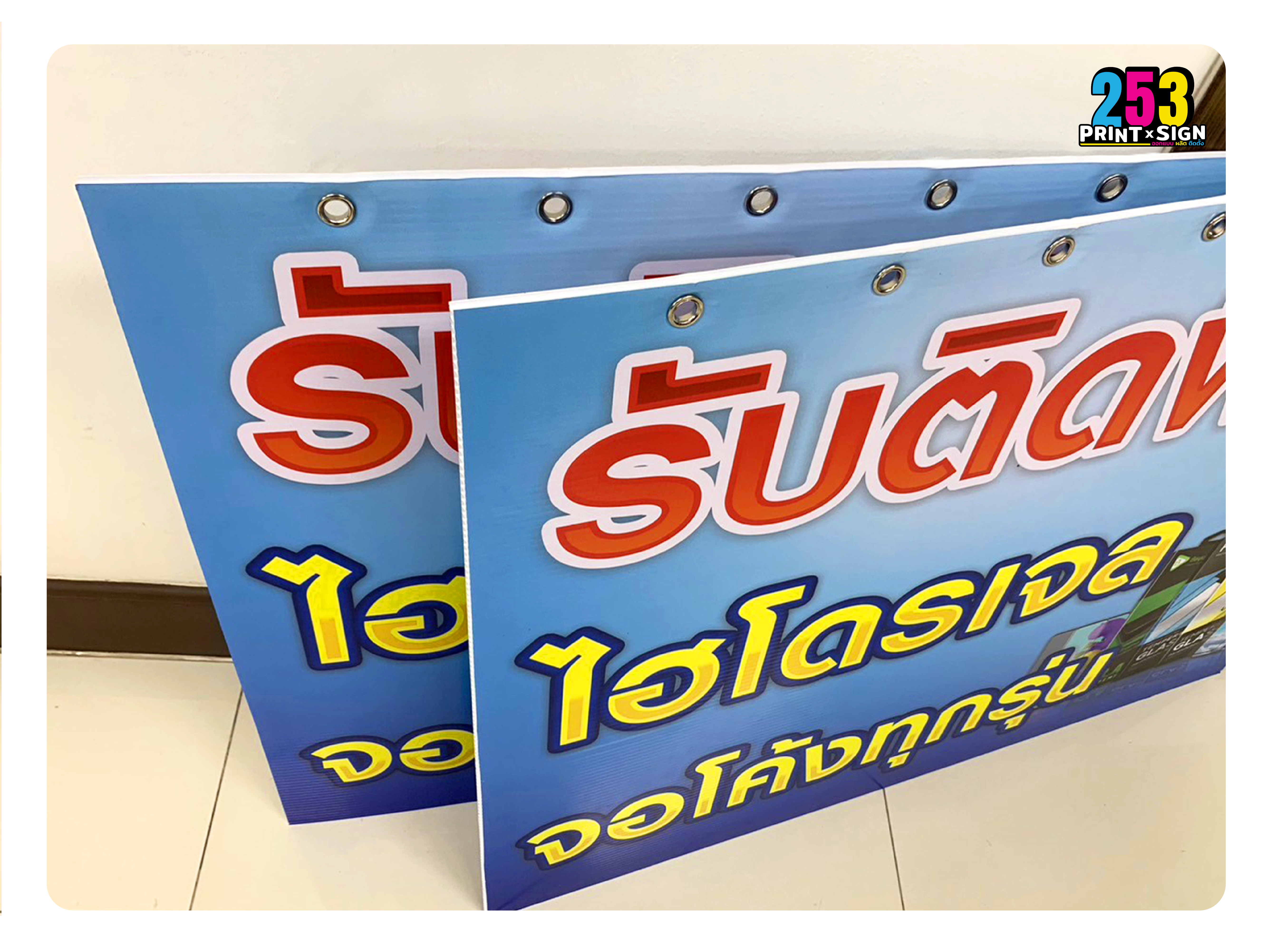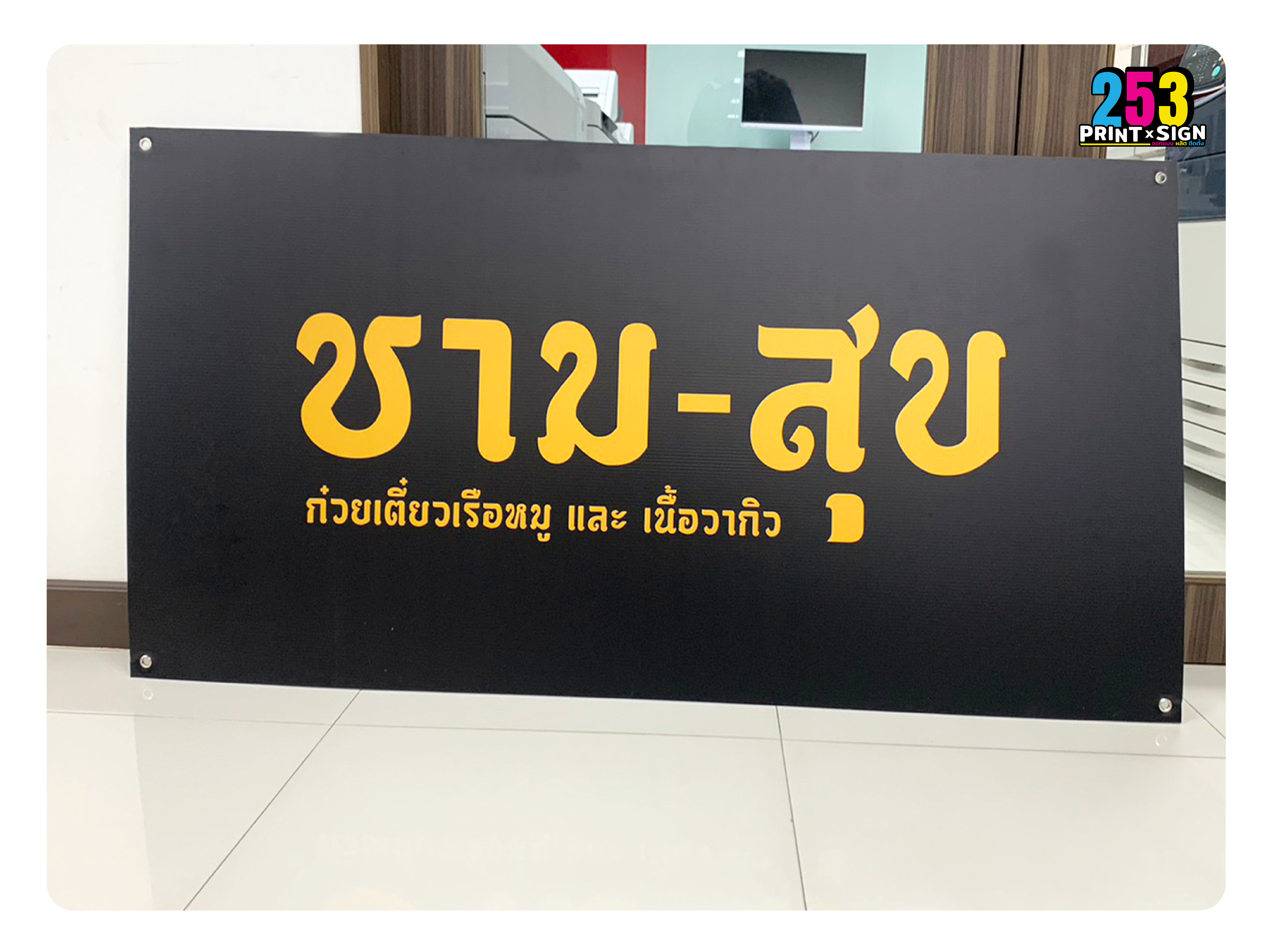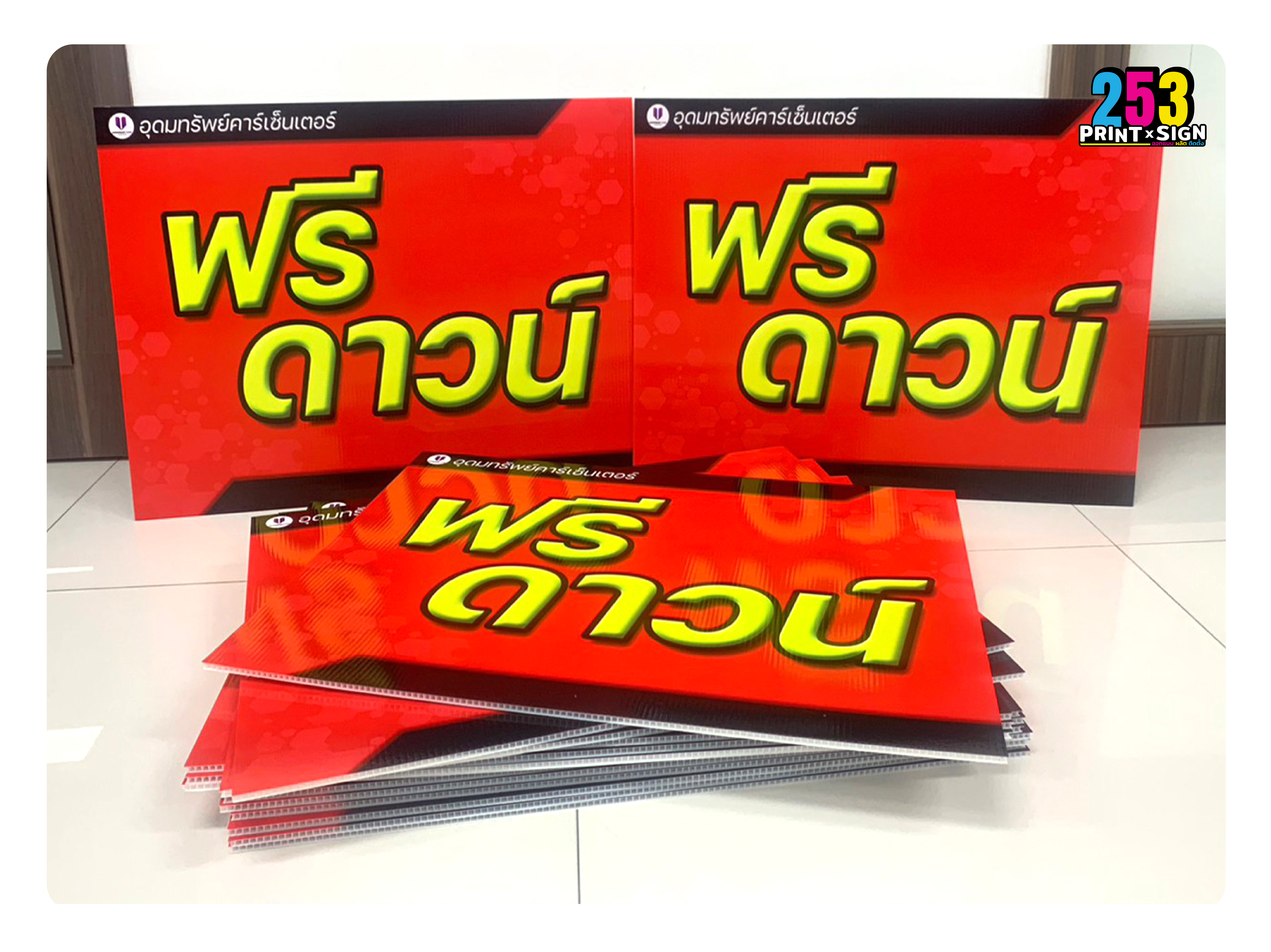 เราผลิตด้วยวัสดุ พีพีบอร์ด (ฟิวเจอร์บอร์ด) มีความหนา 3-5 มม. มั่นใจในความทนทาน ผลิตได้หลากหลายขนาด ติดงานพิมพ์ด้วย สติ๊กเกอร์ PVC พิมพ์อิงค์เจ็ท พิมพ์ UV งานพิมพ์มาตรฐานสูง สีสันสดใส ไดคัทงานตามแบบที่คุณต้องการ ผลิตงานตามสั่ง ไม่มีขั้นต่ำ มีบริการออกแบบ ใช้ระยะเวลาผลิตประมาณ 2 วันทำการ หลังจากที่คุณลูกค้ายืนยันแบบผลิต จัดส่งทั่วประเทศ