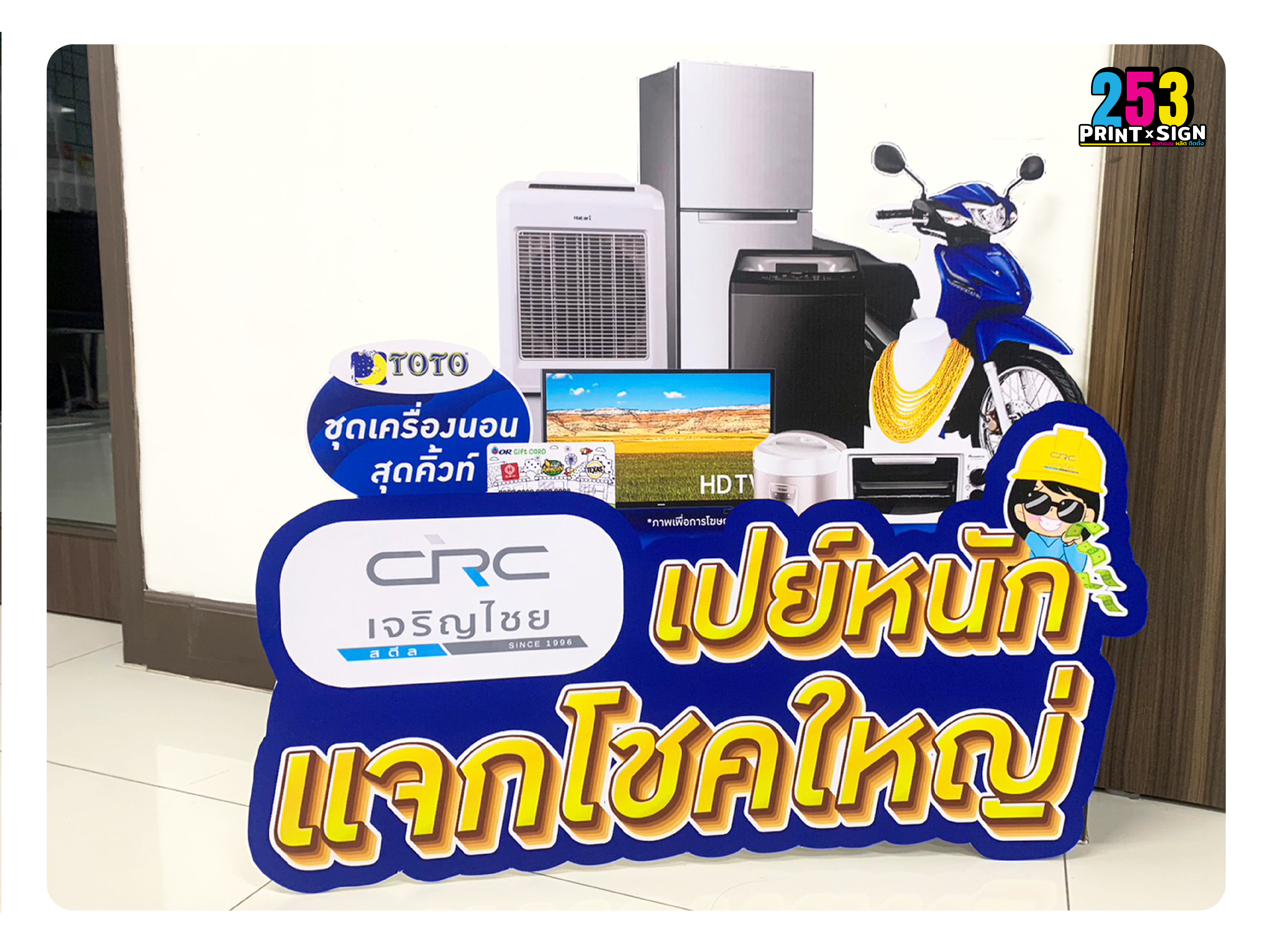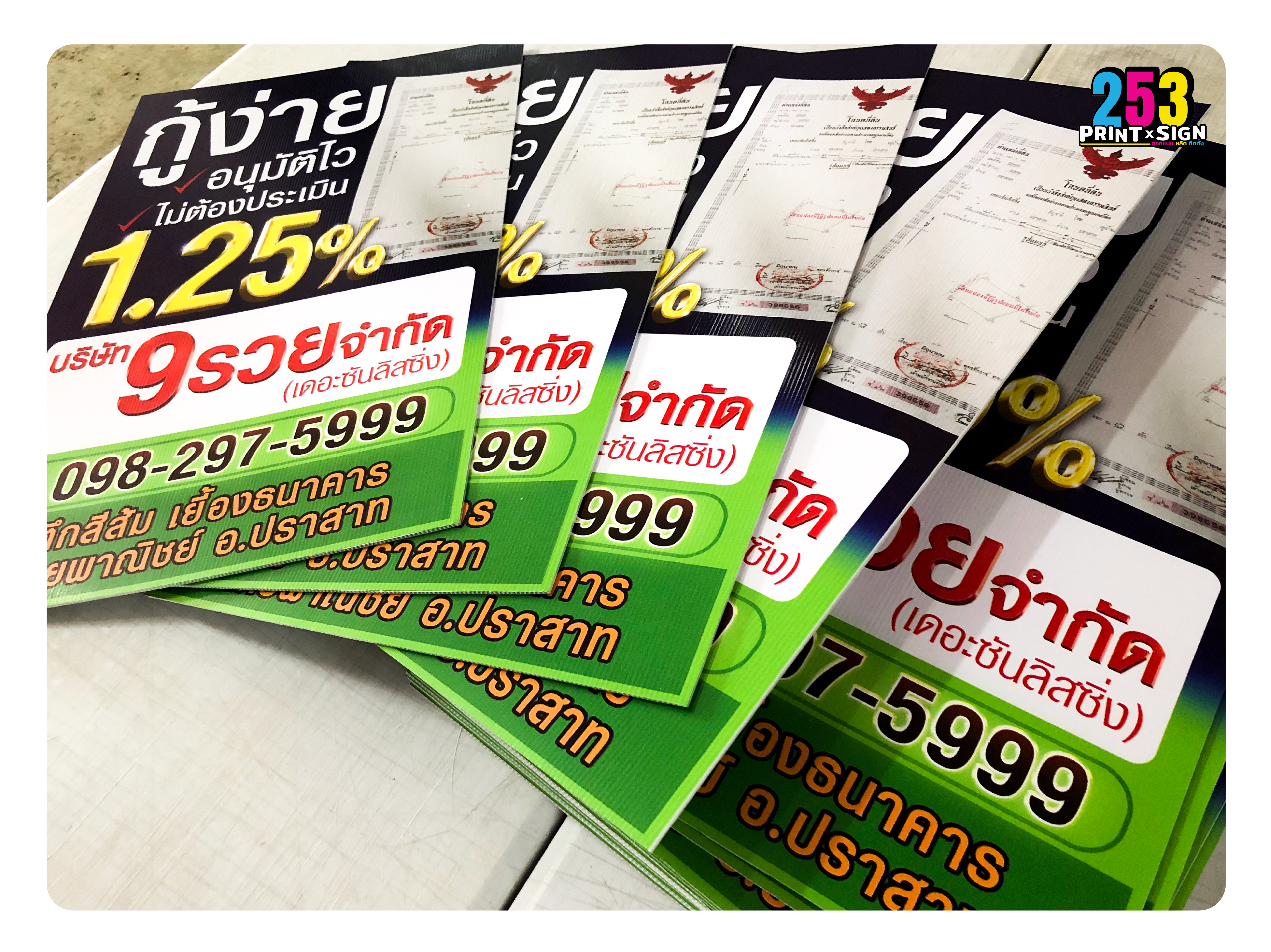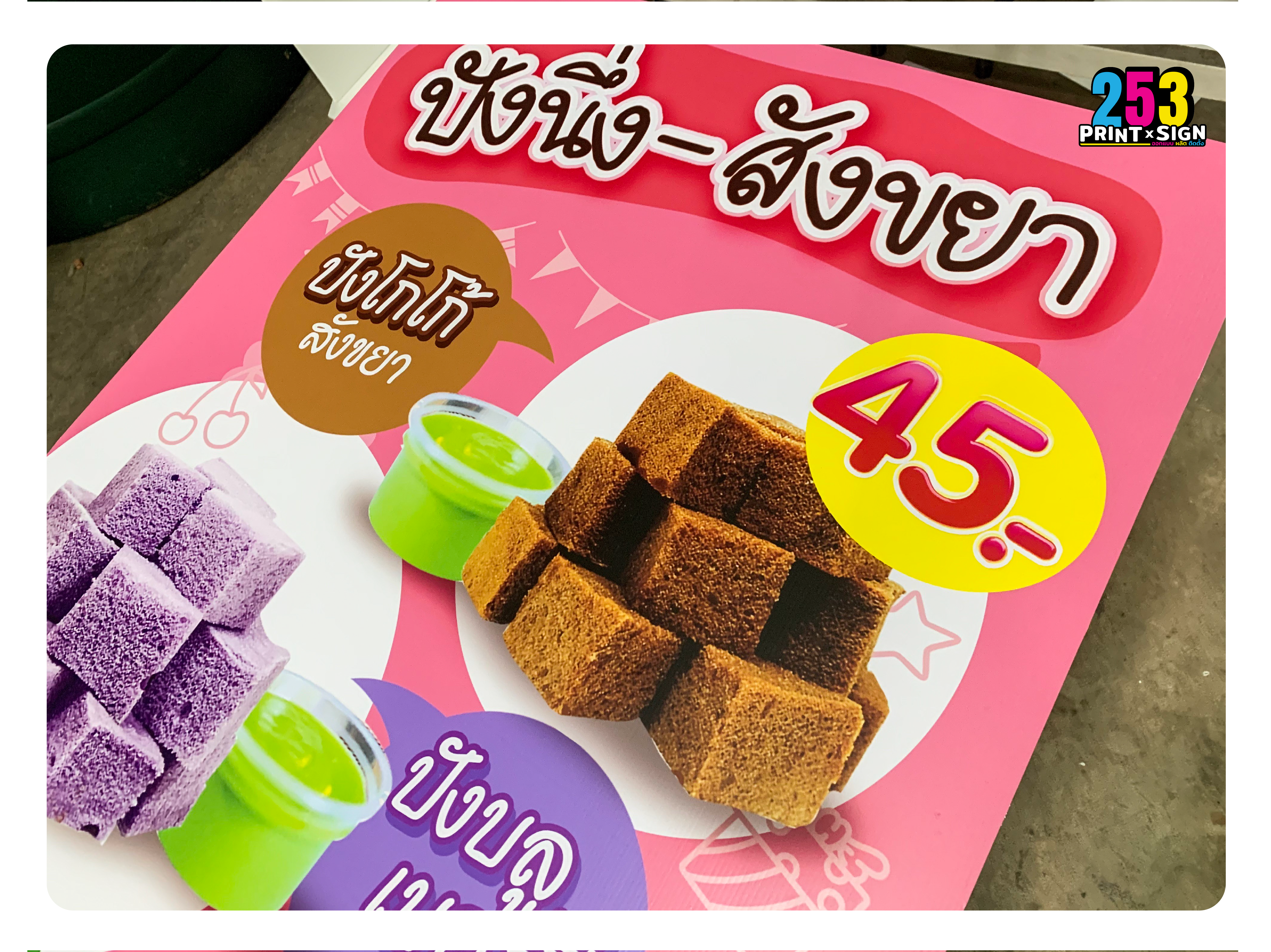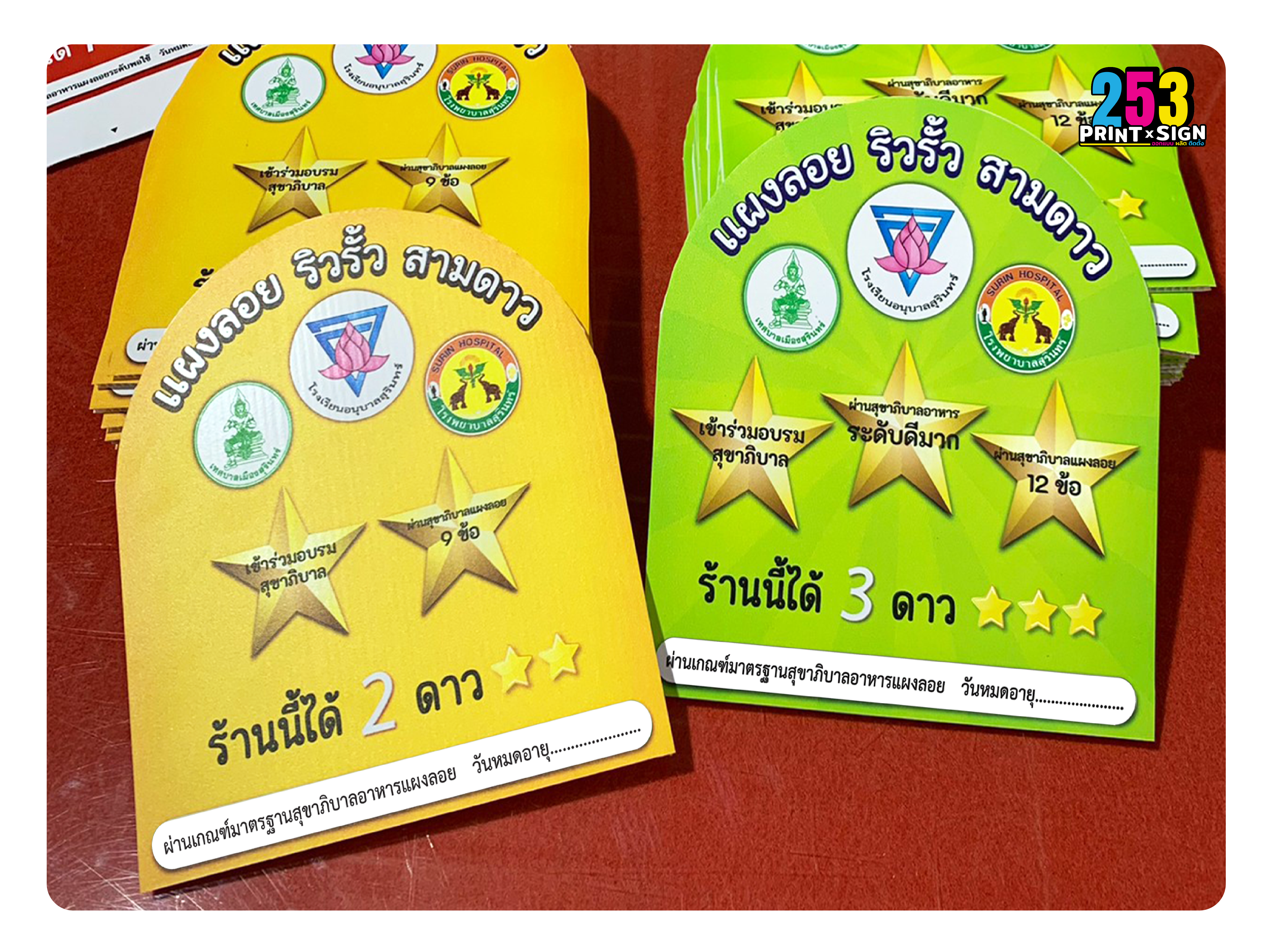 เราผลิตด้วยวัสดุ พีพีบอร์ด (ฟิวเจอร์บอร์ด) มีความหนา 3-5 มม. มั่นใจในความทนทาน ผลิตได้หลากหลายขนาด ติดงานพิมพ์ด้วย สติ๊กเกอร์ PVC พิมพ์อิงค์เจ็ท พิมพ์ UV งานพิมพ์มาตรฐานสูง สีสันสดใส ไดคัทงานตามแบบที่คุณต้องการ ผลิตงานตามสั่ง ไม่มีขั้นต่ำ มีบริการออกแบบ ใช้ระยะเวลาผลิตประมาณ 2 วันทำการ หลังจากที่คุณลูกค้ายืนยันแบบผลิต จัดส่งทั่วประเทศ