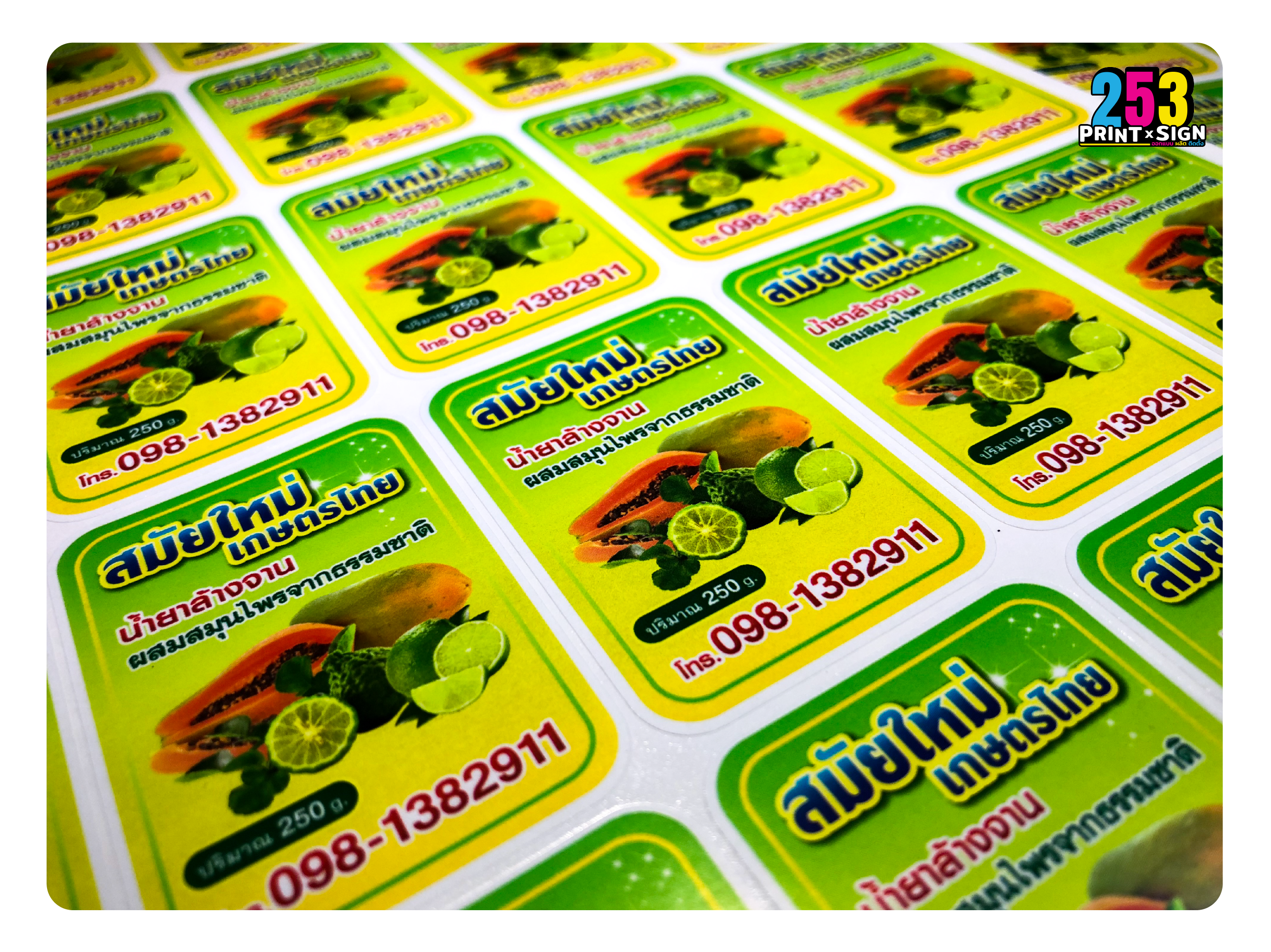 หากกำลังมองหาแหล่งผลิตที่สามารถแนะนำในเรื่องการออกแบบฉลากสินค้าหรือกล่องบรรจุภัณฑ์อื่น ๆ ให้กับคุณได้แบบครบวงจร ซึ่งที่ 253 printsign เราตอบโจทย์ทุกความต้องการของอุตสาหกรรมด้วยเทคโนโลยีระบบการพิมพ์ที่ทันสมัย ทั้งระบบ Inkjet และ Digital และวัสดุสติกเกอร์หลากหลาย คุณภาพสูง สีสด คมชัด และทนทาน รองรับงานพิมพ์ได้ทุกประเภท อีกทั้งเรายังมีมืออาชีพในการช่วยออกแบบสติ๊กเกอร์ฉลากสินค้าให้กับลูกค้าด้วย ยิ่งผลิตมากยิ่งถูกมาก